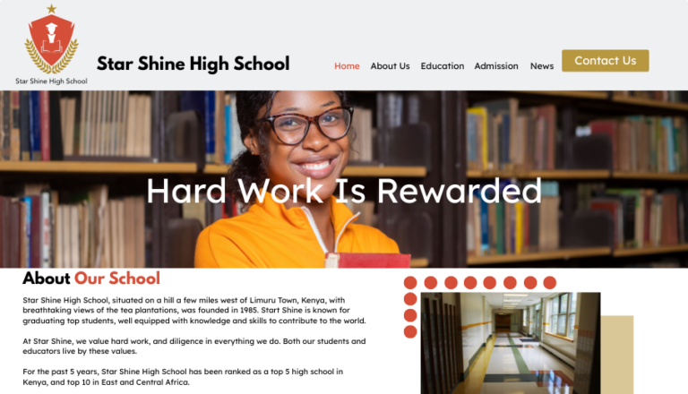 The school’s account has been created, and the website is ready for publishing and maintenance.